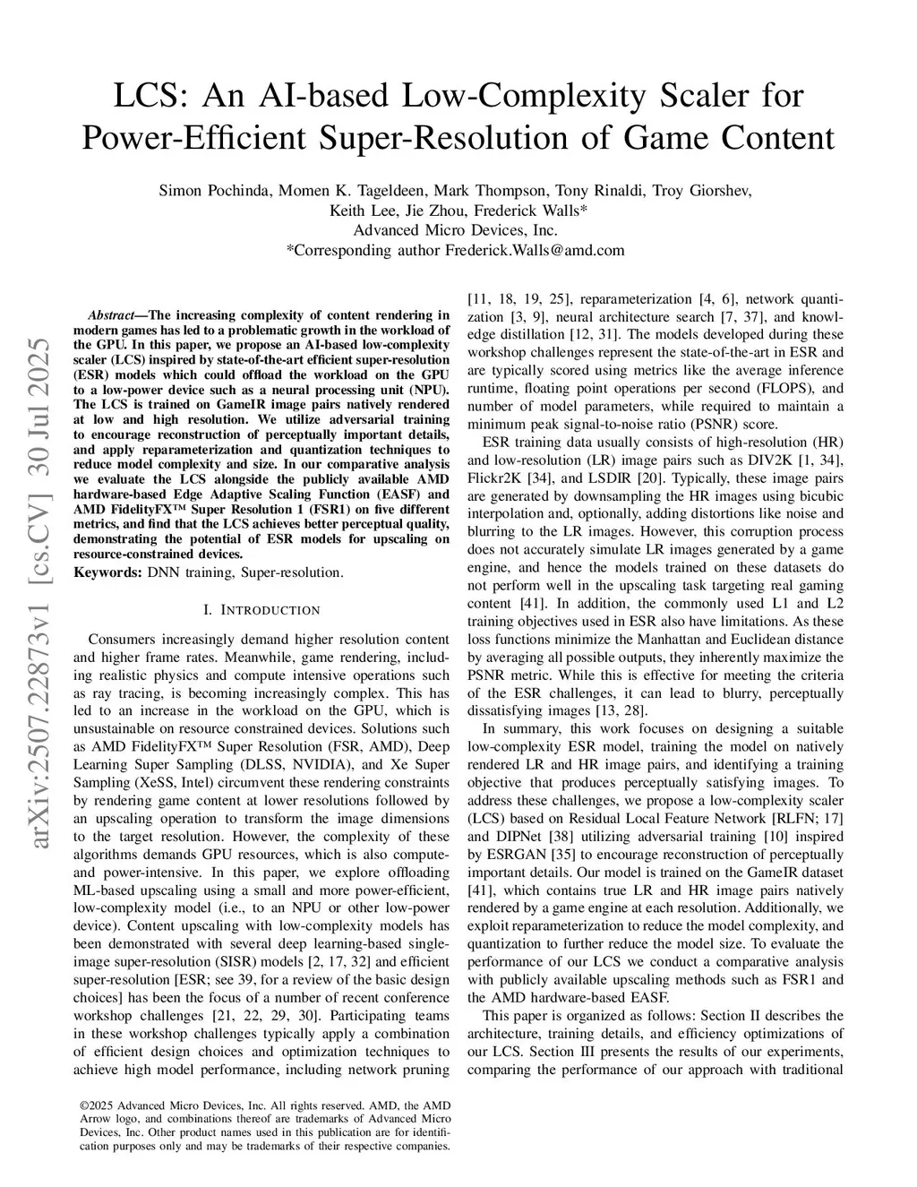 LCS: An AI-based Low-Complexity Scaler for Power-Efficient Super-Resolution of Game Content