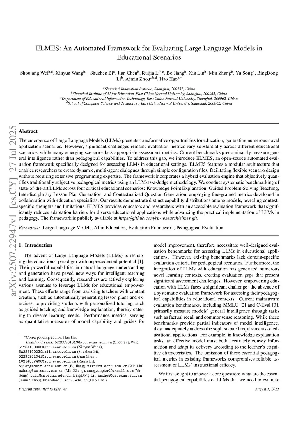 ELMES: An Automated Framework for Evaluating Large Language Models in Educational Scenarios