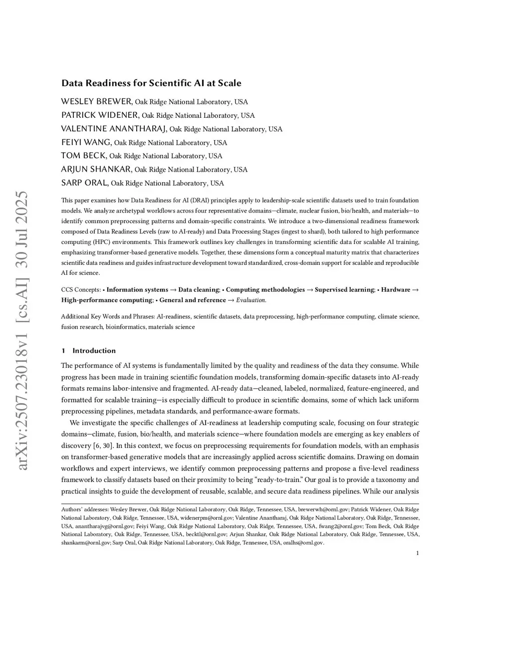 This paper examines how Data Readiness for AI (DRAI) principles apply to leadership-scale scientific datasets used to train foundation models. We analyze archetypal workflows across four representative domains - climate, nuclear fusion, bio/health, and materials - to identify common preprocessing patterns and domain-specific constraints. We introduce a two-dimensional readiness framework composed of Data Readiness Levels (raw to AI-ready) and Data Processing Stages (ingest to shard), both tailored to high performance computing (HPC) environments. This framework outlines key challenges in transforming scientific data for scalable AI training, emphasizing transformer-based generative models. Together, these dimensions form a conceptual maturity matrix that characterizes scientific data readiness and guides infrastructure development toward standardized, cross-domain support for scalable and reproducible AI for science.