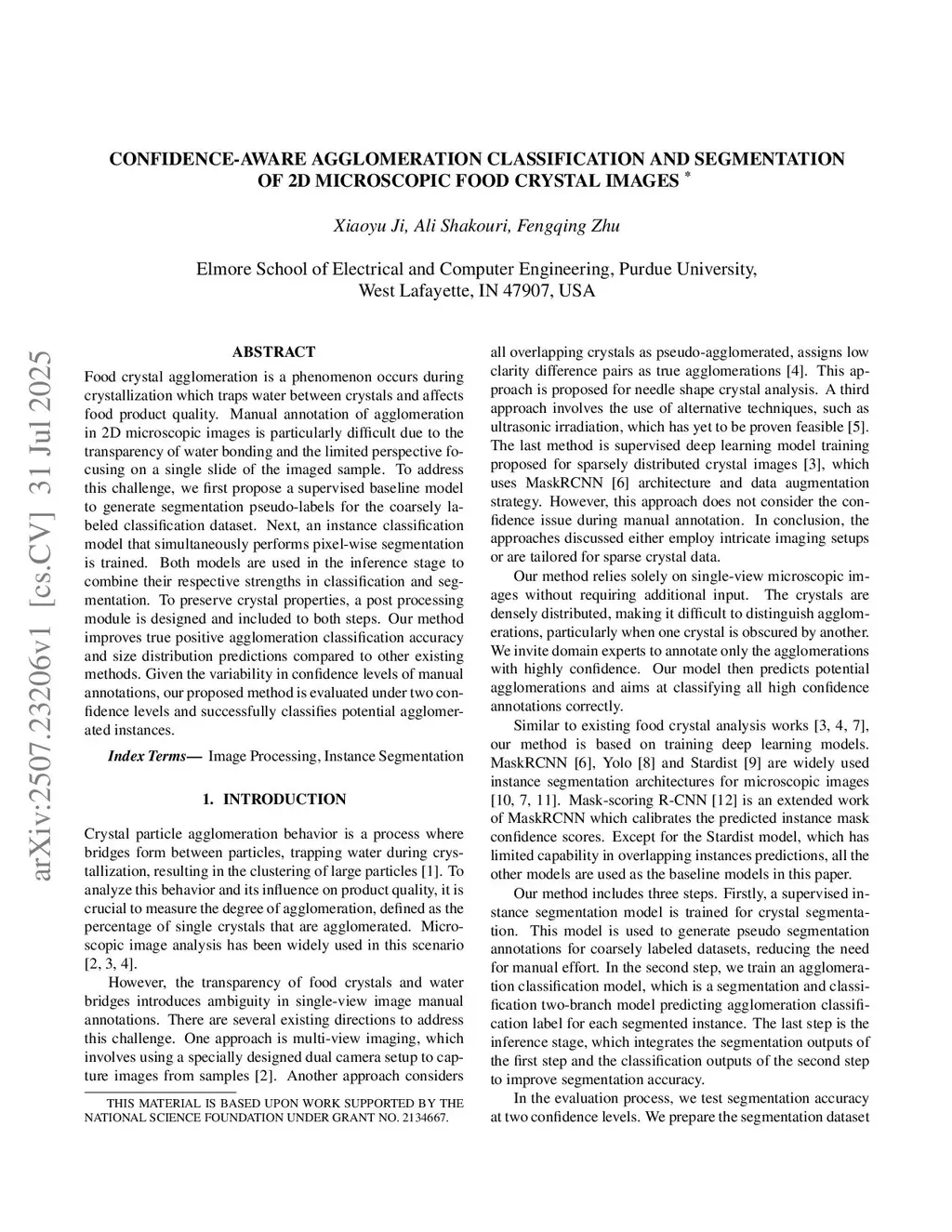 Confidence-aware agglomeration classification and segmentation of 2D microscopic food crystal images