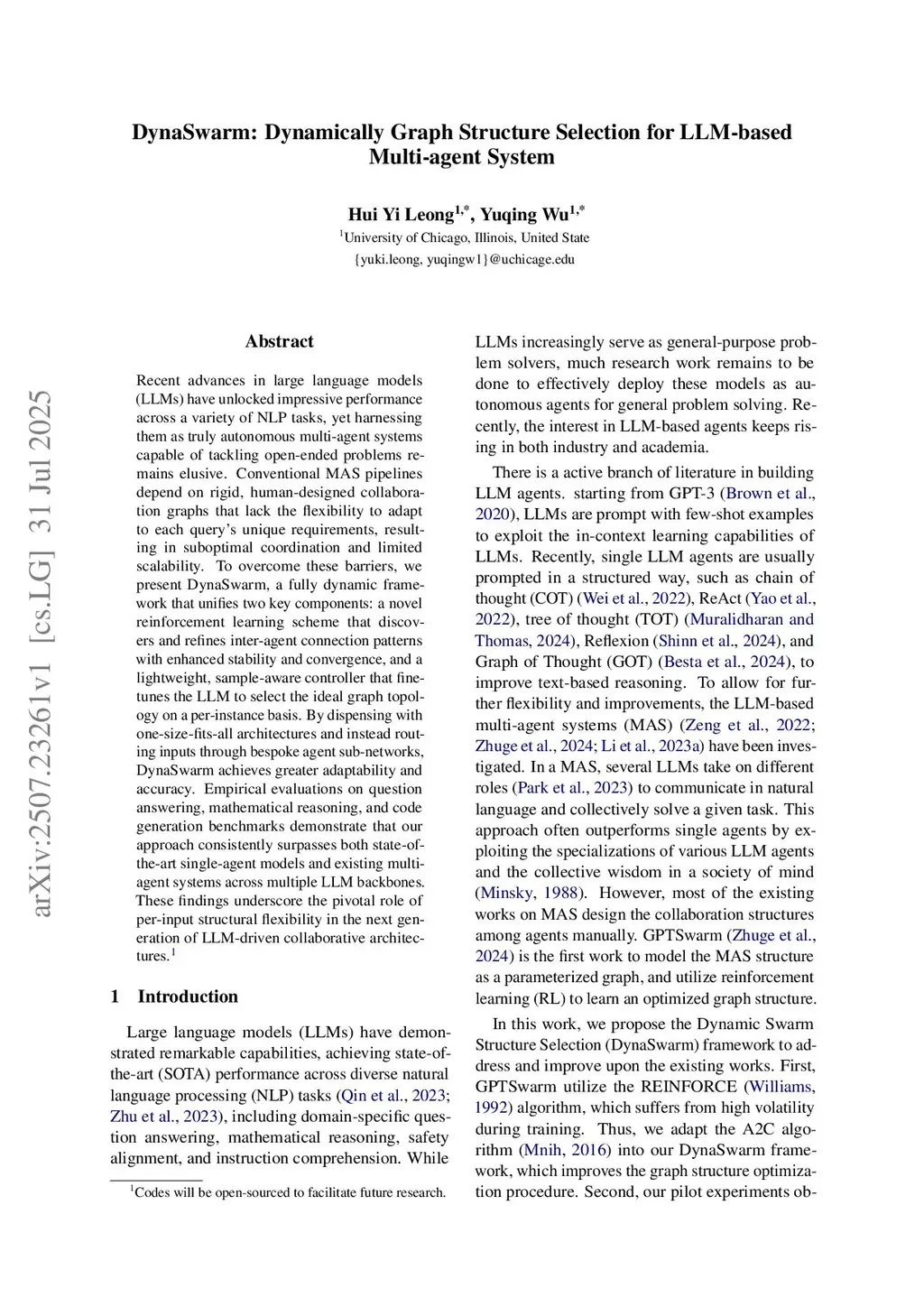 DynaSwarm: Dynamically Graph Structure Selection for LLM-based Multi-agent System