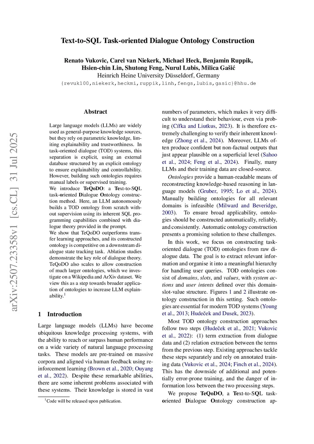 Text-to-SQL Task-oriented Dialogue Ontology Construction