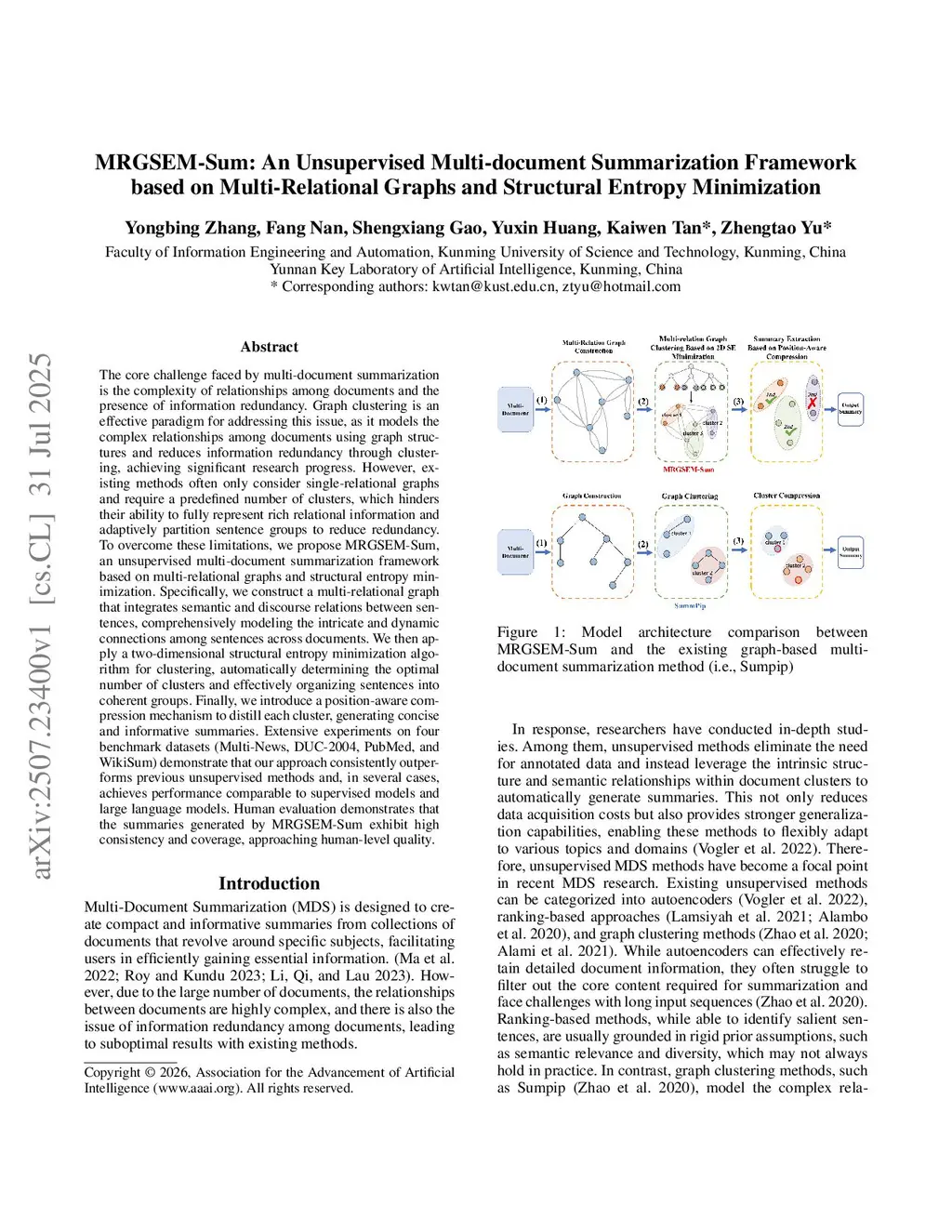 MRGSEM-Sum: An Unsupervised Multi-document Summarization Framework based on Multi-Relational Graphs and Structural Entropy Minimization