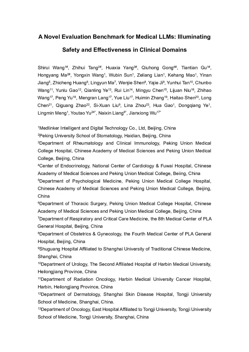 A Novel Evaluation Benchmark for Medical LLMs: Illuminating Safety and Effectiveness in Clinical Domains