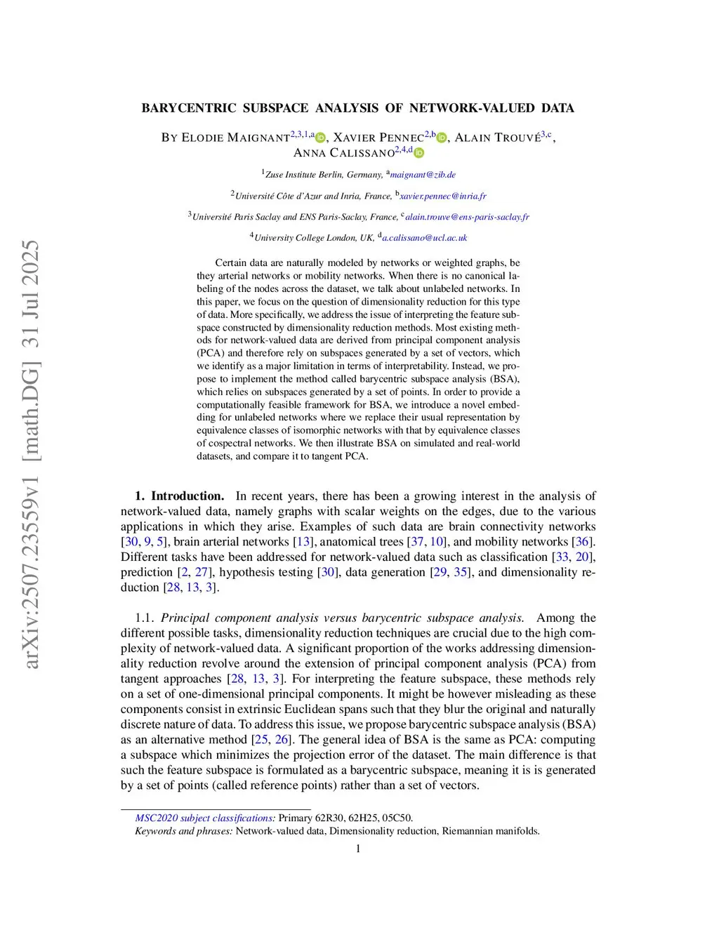 Barycentric subspace analysis of network-valued data