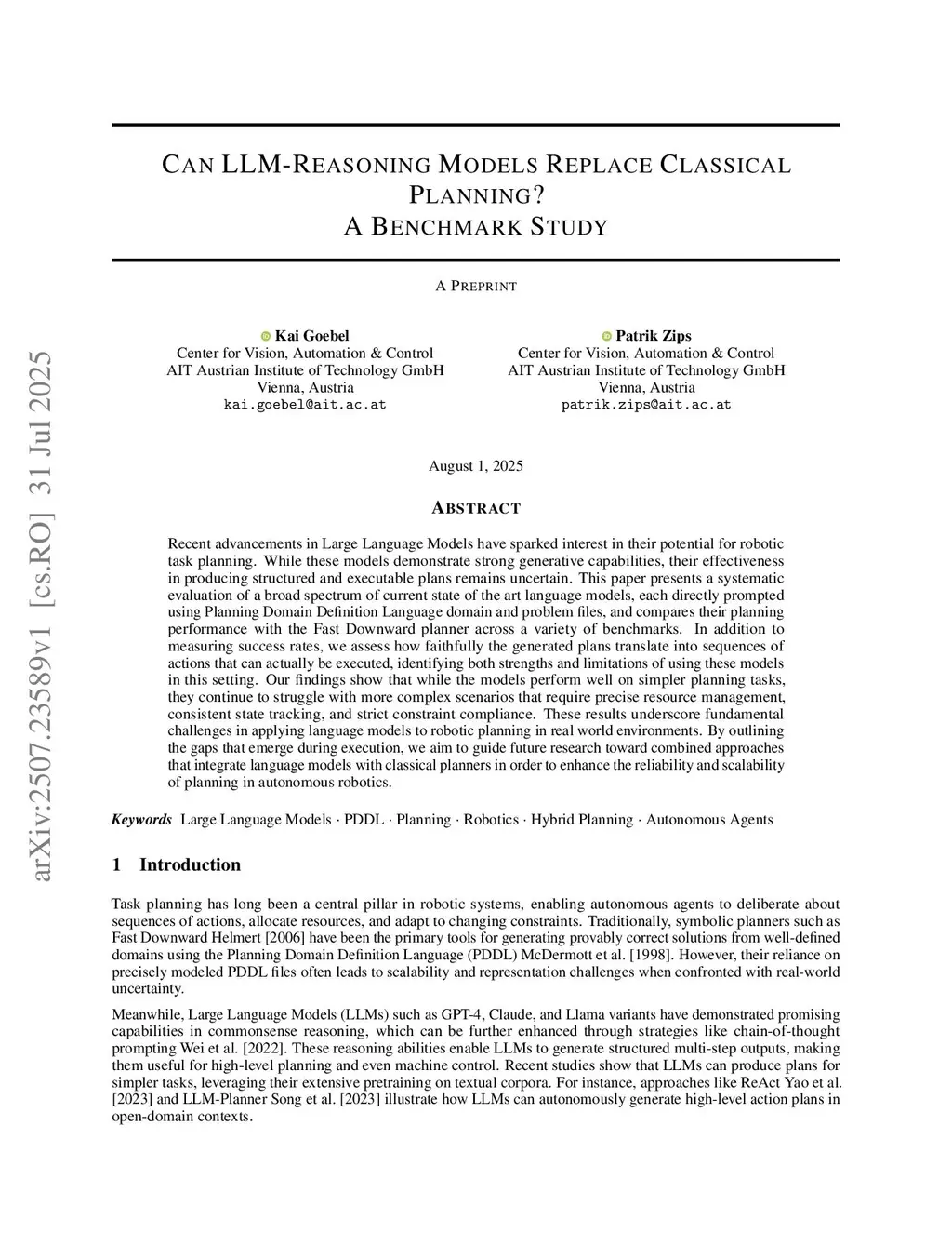 Recent advancements in Large Language Models have sparked interest in their potential for robotic task planning. While these models demonstrate strong generative capabilities, their effectiveness in producing structured and executable plans remains uncertain. This paper presents a systematic evaluation of a broad spectrum of current state of the art language models, each directly prompted using Planning Domain Definition Language domain and problem files, and compares their planning performance with the Fast Downward planner across a variety of benchmarks. In addition to measuring success rates, we assess how faithfully the generated plans translate into sequences of actions that can actually be executed, identifying both strengths and limitations of using these models in this setting. Our findings show that while the models perform well on simpler planning tasks, they continue to struggle with more complex scenarios that require precise resource management, consistent state tracking, and strict constraint compliance. These results underscore fundamental challenges in applying language models to robotic planning in real world environments. By outlining the gaps that emerge during execution, we aim to guide future research toward combined approaches that integrate language models with classical planners in order to enhance the reliability and scalability of planning in autonomous robotics.
