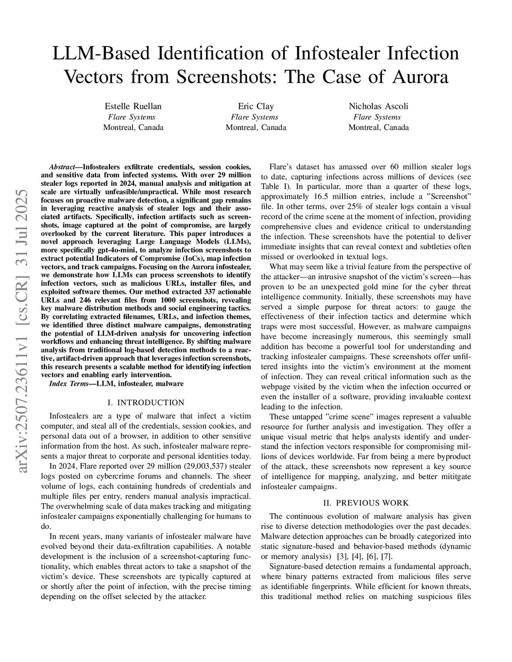 LLM-Based Identification of Infostealer Infection Vectors from Screenshots: The Case of Aurora