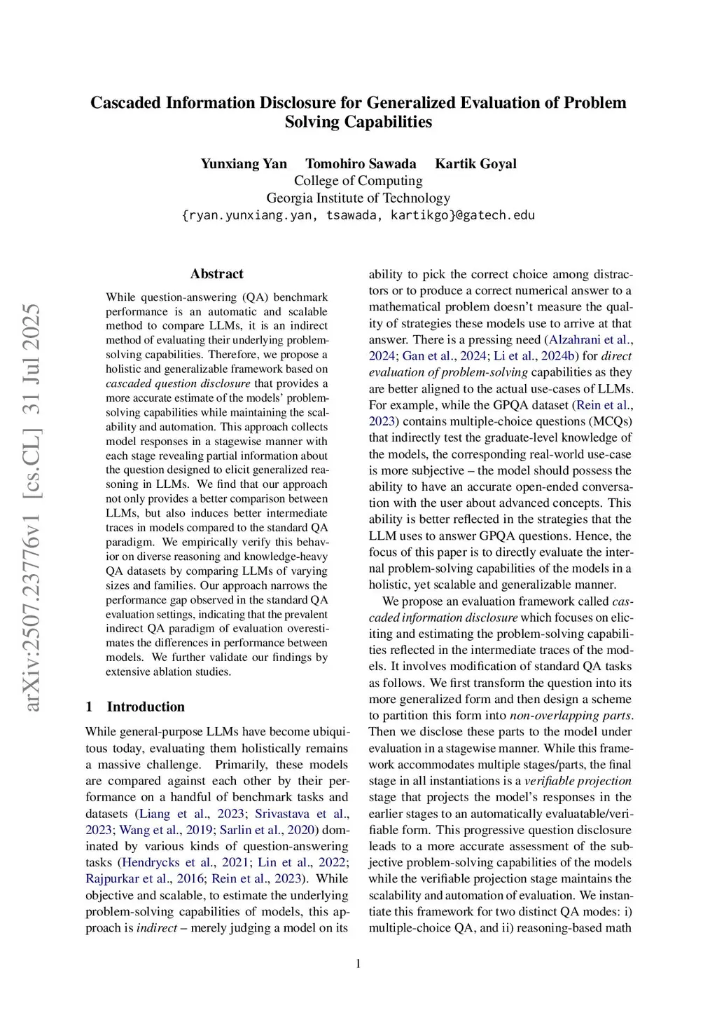 Cascaded Information Disclosure for Generalized Evaluation of Problem Solving Capabilities