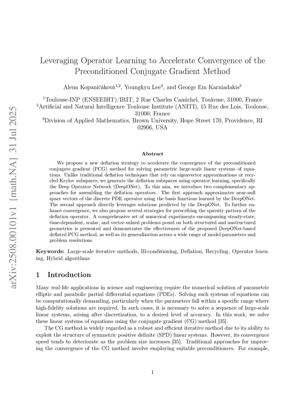 Leveraging Operator Learning to Accelerate Convergence of the Preconditioned Conjugate Gradient Method