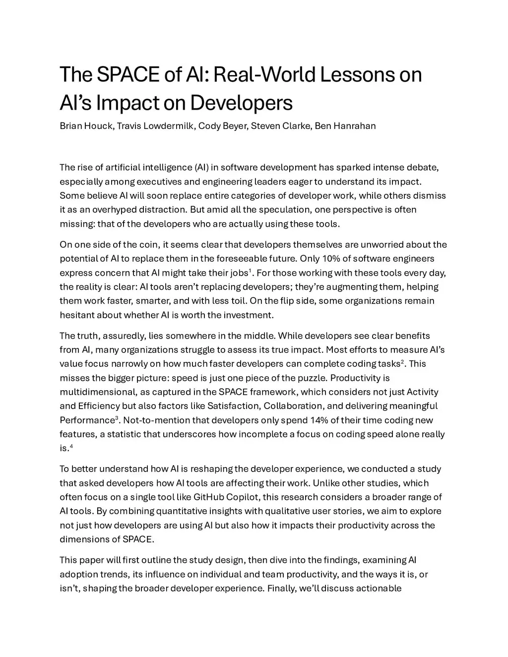 The SPACE of AI: Real-World Lessons on AI's Impact on Developers