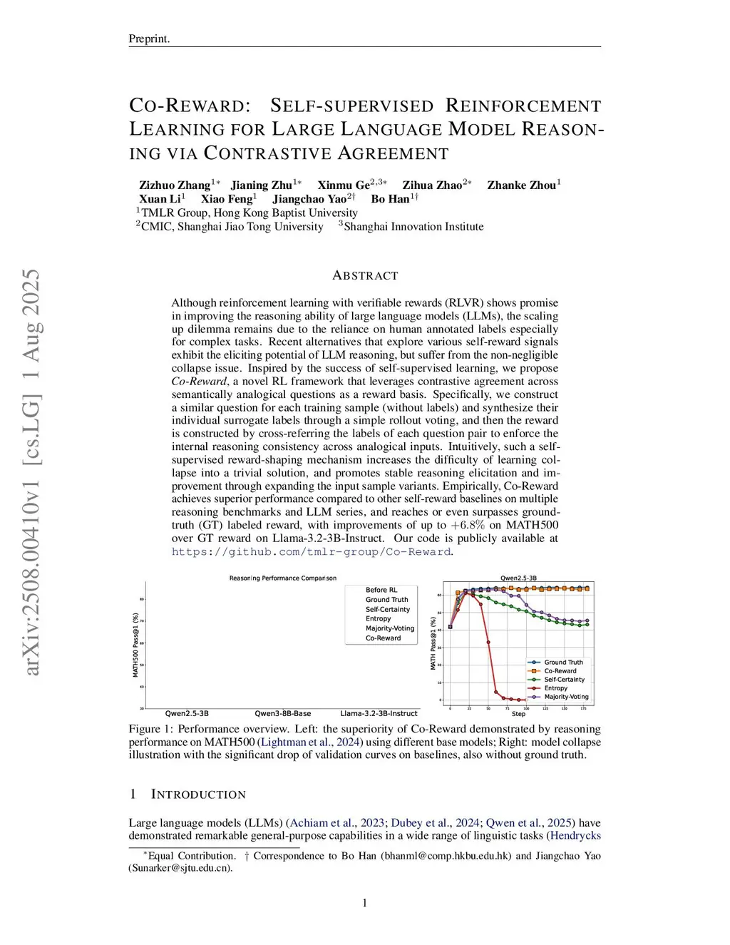Co-Reward: Self-supervised Reinforcement Learning for Large Language Model Reasoning via Contrastive Agreement