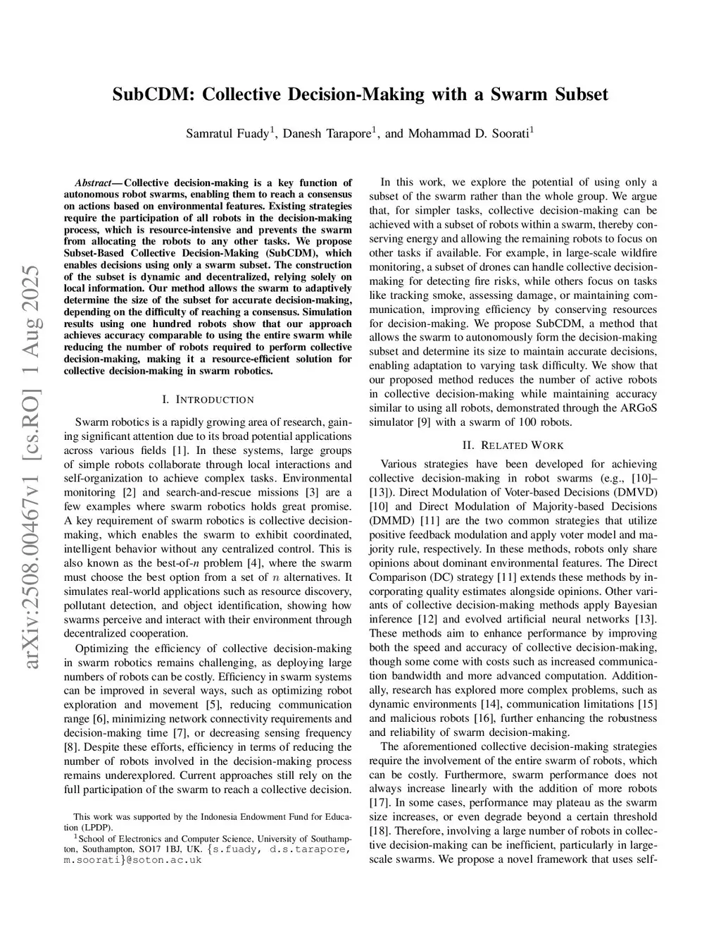 SubCDM: Collective Decision-Making with a Swarm Subset