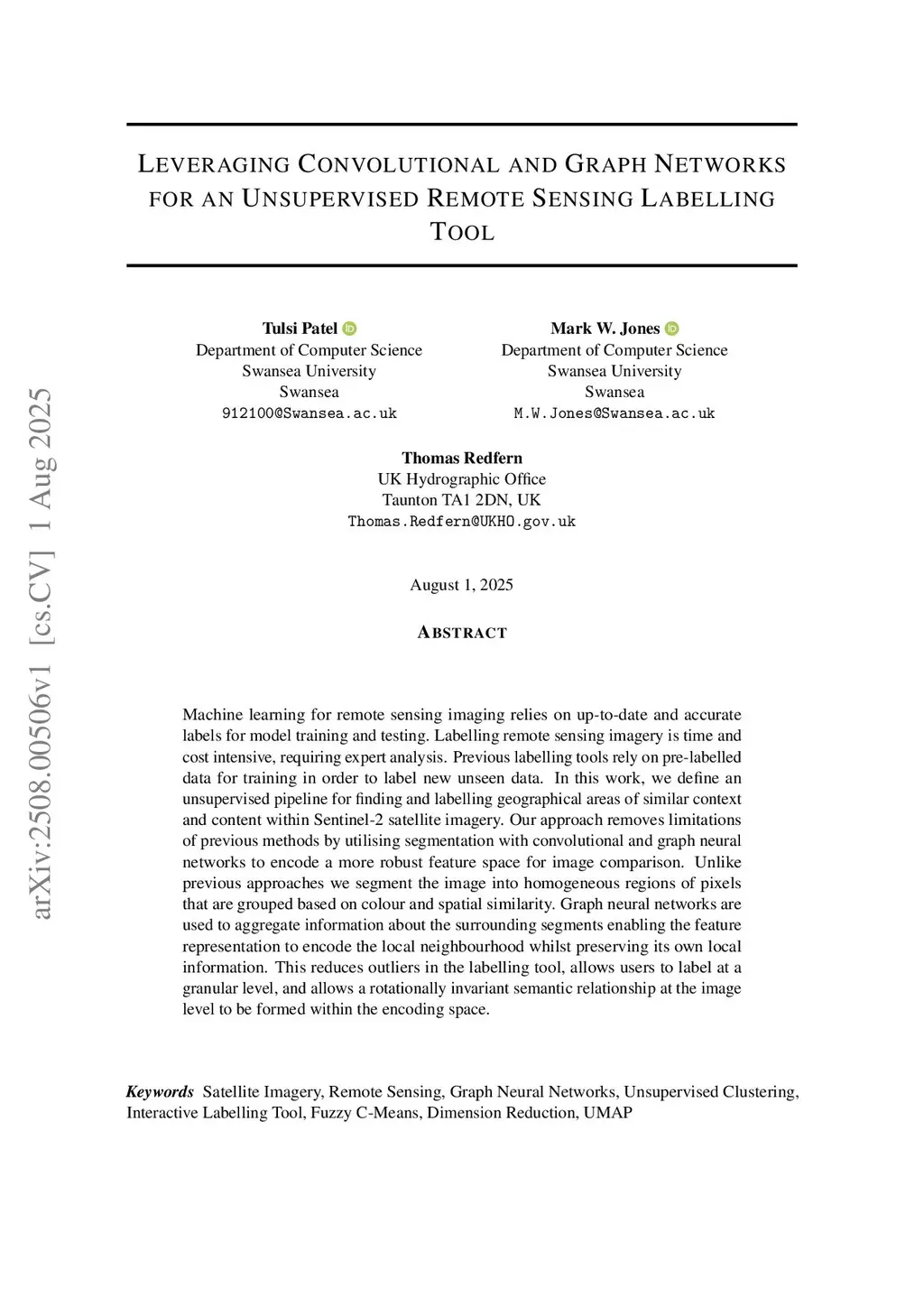 Leveraging Convolutional and Graph Networks for an Unsupervised Remote Sensing Labelling Tool