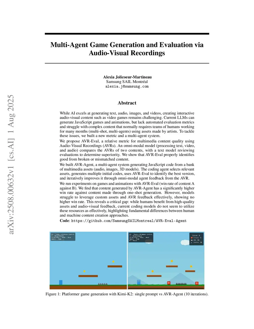 Multi-Agent Game Generation and Evaluation via Audio-Visual Recordings