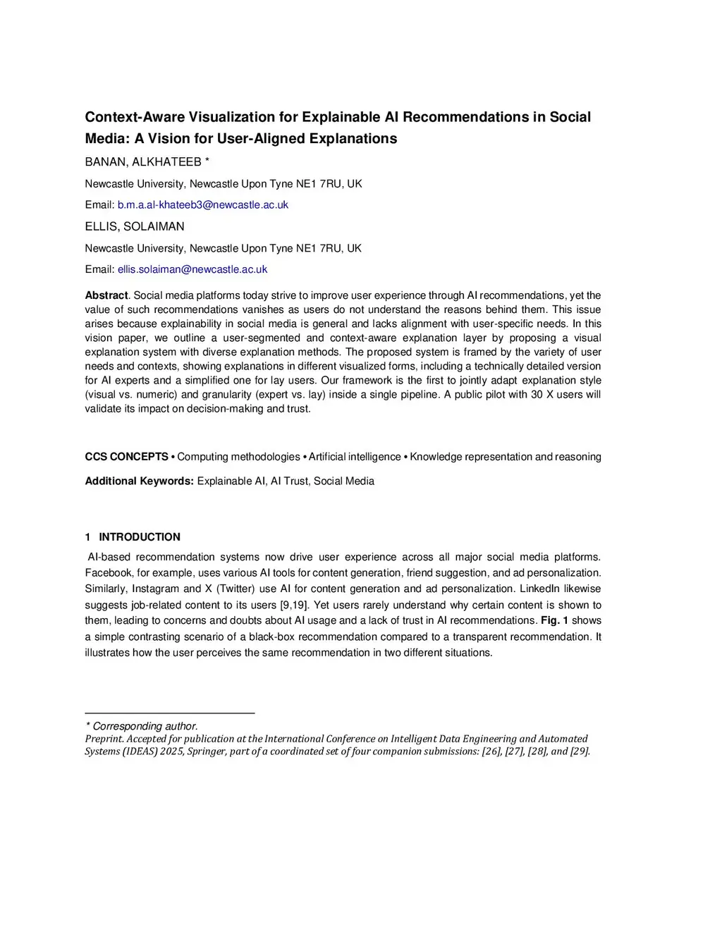 Context-Aware Visualization for Explainable AI Recommendations in Social Media: A Vision for User-Aligned Explanations