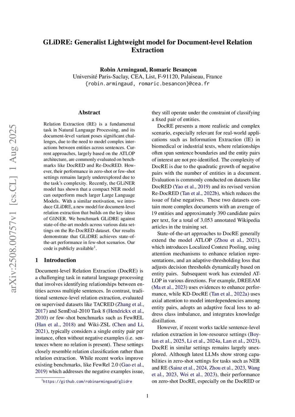 GLiDRE: Generalist Lightweight model for Document-level Relation Extraction