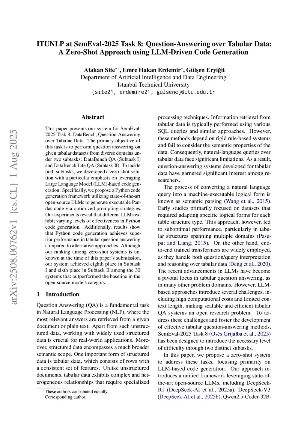ITUNLP at SemEval-2025 Task 8: Question-Answering over Tabular Data: A Zero-Shot Approach using LLM-Driven Code Generation