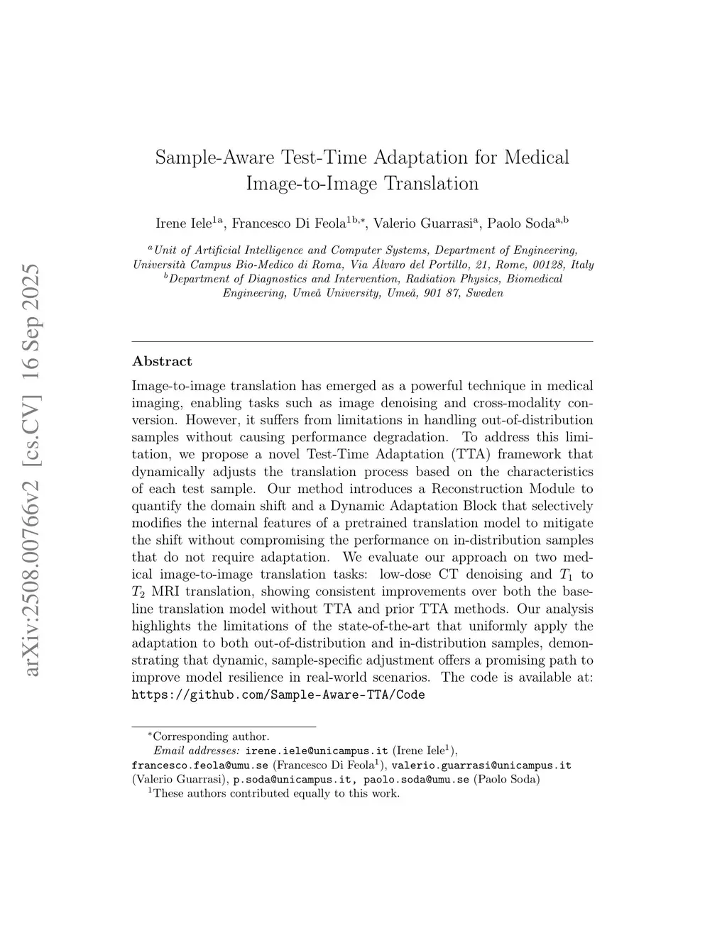 Sample-Aware Test-Time Adaptation for Medical Image-to-Image Translation