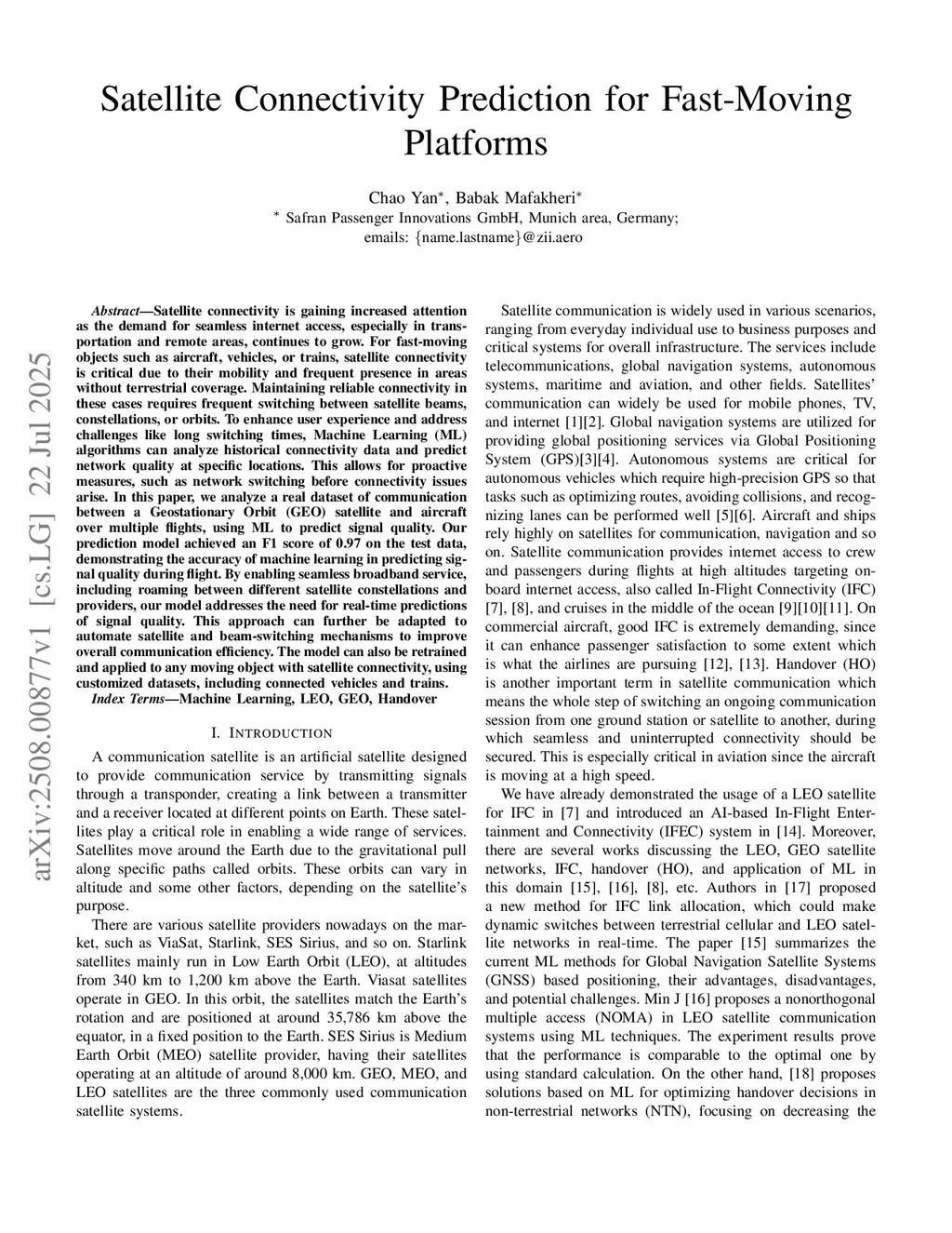 Satellite Connectivity Prediction for Fast-Moving Platforms