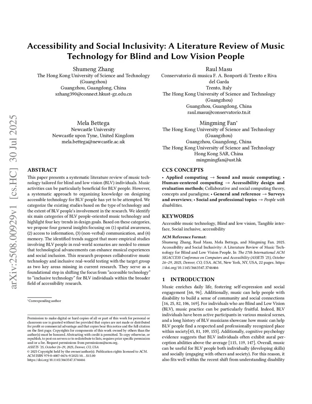 Accessibility and Social Inclusivity: A Literature Review of Music Technology for Blind and Low Vision People