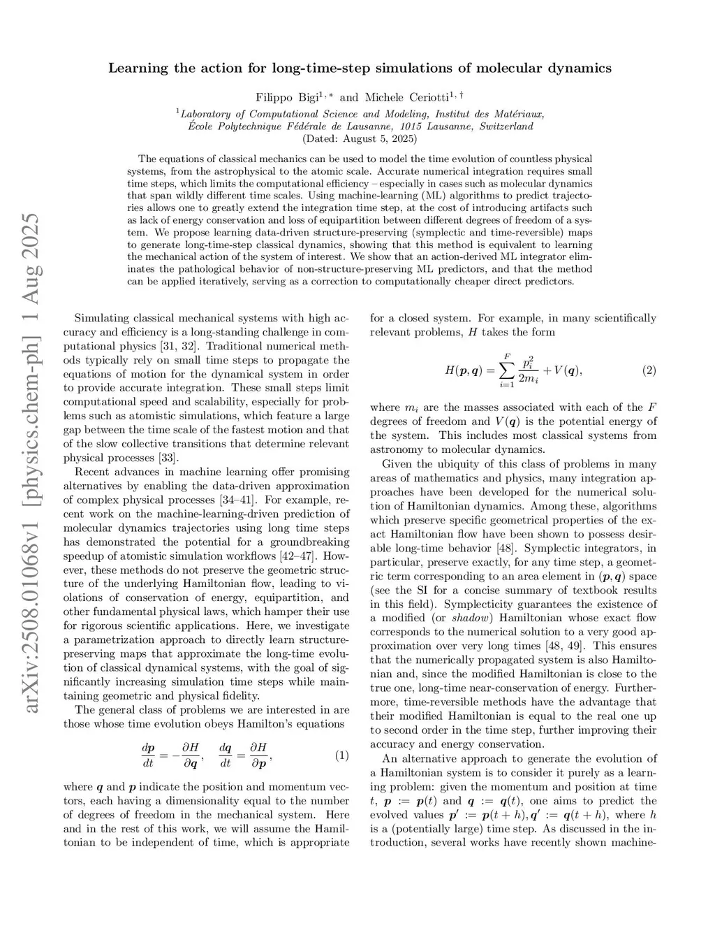 The equations of classical mechanics can be used to model the time evolution of countless physical systems, from the astrophysical to the atomic scale. Accurate numerical integration requires small time steps, which limits the computational efficiency -- especially in cases such as molecular dynamics that span wildly different time scales. Using machine-learning (ML) algorithms to predict trajectories allows one to greatly extend the integration time step, at the cost of introducing artifacts such as lack of energy conservation and loss of equipartition between different degrees of freedom of a system. We propose learning data-driven structure-preserving (symplectic and time-reversible) maps to generate long time-step classical dynamics and show that this method is equivalent to learning the mechanical action of the system of interest. These models can be learned based on short reference trajectories, and be transferred across thermodynamic conditions and chemical composition. We show that an action-derived ML integrator eliminates the pathological behavior of non-structure-preserving ML predictors, and that the method can be applied iteratively, serving as a correction to computationally cheaper direct predictors.