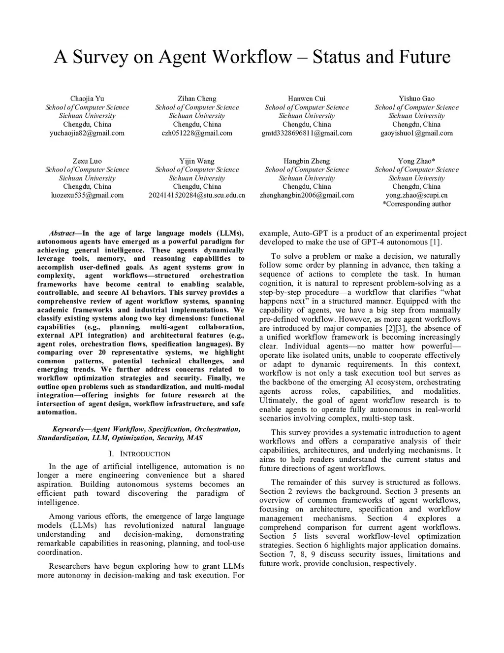 A Survey on Agent Workflow -- Status and Future