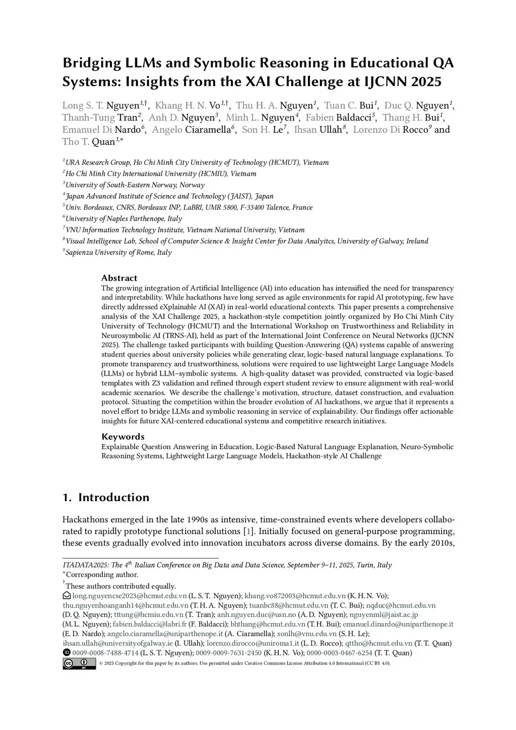 The growing integration of Artificial Intelligence (AI) into education has intensified the need for transparency and interpretability. While hackathons have long served as agile environments for rapid AI prototyping, few have directly addressed eXplainable AI (XAI) in real-world educational contexts. This paper presents a comprehensive analysis of the XAI Challenge 2025, a hackathon-style competition jointly organized by Ho Chi Minh City University of Technology (HCMUT) and the International Workshop on Trustworthiness and Reliability in Neurosymbolic AI (TRNS-AI), held as part of the International Joint Conference on Neural Networks (IJCNN 2025). The challenge tasked participants with building Question-Answering (QA) systems capable of answering student queries about university policies while generating clear, logic-based natural language explanations. To promote transparency and trustworthiness, solutions were required to use lightweight Large Language Models (LLMs) or hybrid LLM-symbolic systems. A high-quality dataset was provided, constructed via logic-based templates with Z3 validation and refined through expert student review to ensure alignment with real-world academic scenarios. We describe the challenge's motivation, structure, dataset construction, and evaluation protocol. Situating the competition within the broader evolution of AI hackathons, we argue that it represents a novel effort to bridge LLMs and symbolic reasoning in service of explainability. Our findings offer actionable insights for future XAI-centered educational systems and competitive research initiatives.
