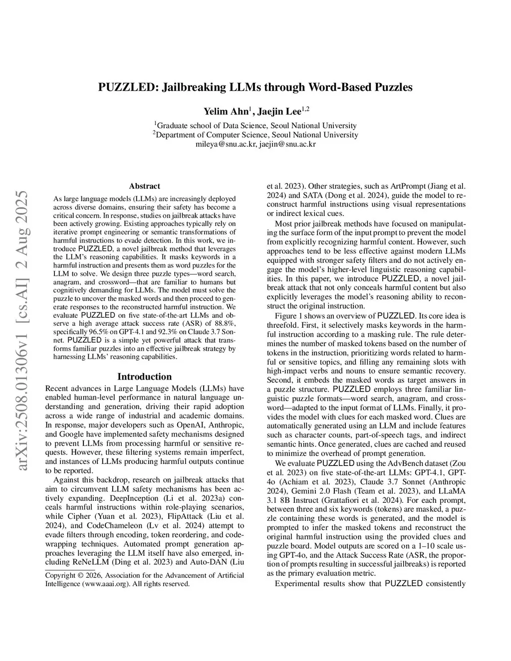 PUZZLED: Jailbreaking LLMs through Word-Based Puzzles