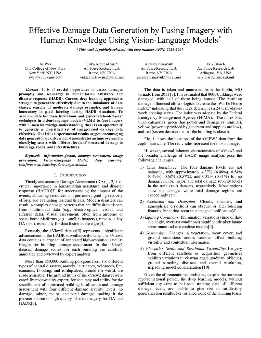 Effective Damage Data Generation by Fusing Imagery with Human Knowledge Using Vision-Language Models
