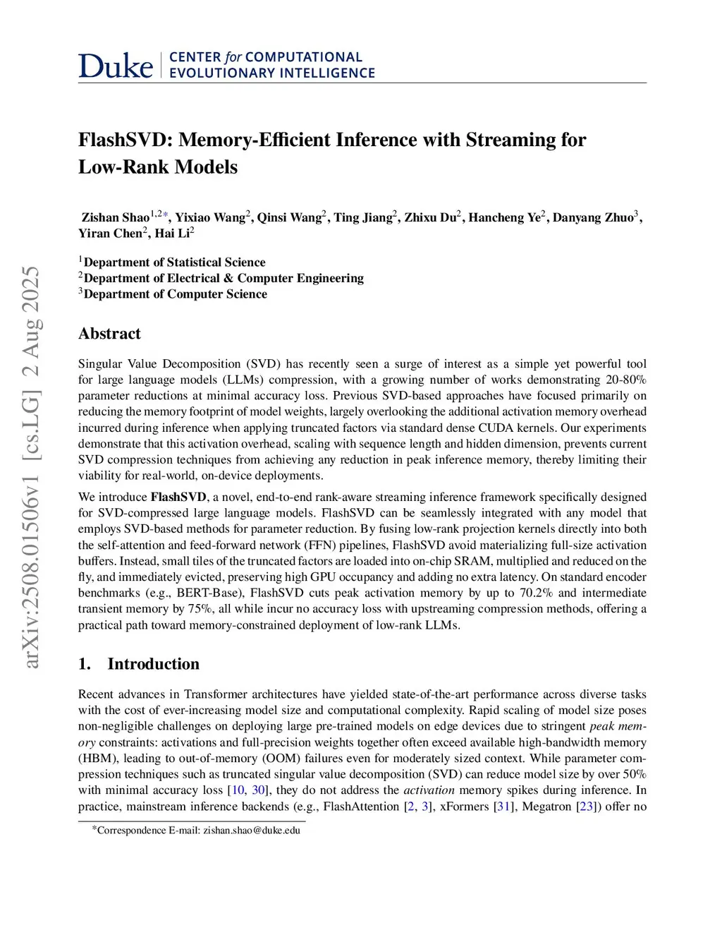 FlashSVD: Memory-Efficient Inference with Streaming for Low-Rank Models