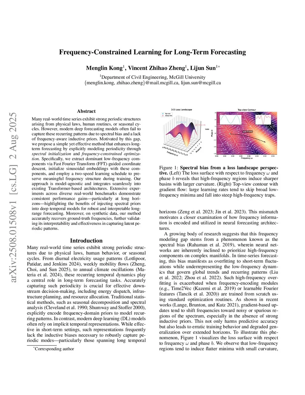 Many real-world time series exhibit strong periodic structures arising from physical laws, human routines, or seasonal cycles. However, modern deep forecasting models often fail to capture these recurring patterns due to spectral bias and a lack of frequency-aware inductive priors. Motivated by this gap, we propose a simple yet effective method that enhances long-term forecasting by explicitly modeling periodicity through spectral initialization and frequency-constrained optimization. Specifically, we extract dominant low-frequency components via Fast Fourier Transform (FFT)-guided coordinate descent, initialize sinusoidal embeddings with these components, and employ a two-speed learning schedule to preserve meaningful frequency structure during training. Our approach is model-agnostic and integrates seamlessly into existing Transformer-based architectures. Extensive experiments across diverse real-world benchmarks demonstrate consistent performance gains--particularly at long horizons--highlighting the benefits of injecting spectral priors into deep temporal models for robust and interpretable long-range forecasting. Moreover, on synthetic data, our method accurately recovers ground-truth frequencies, further validating its interpretability and effectiveness in capturing latent periodic patterns.