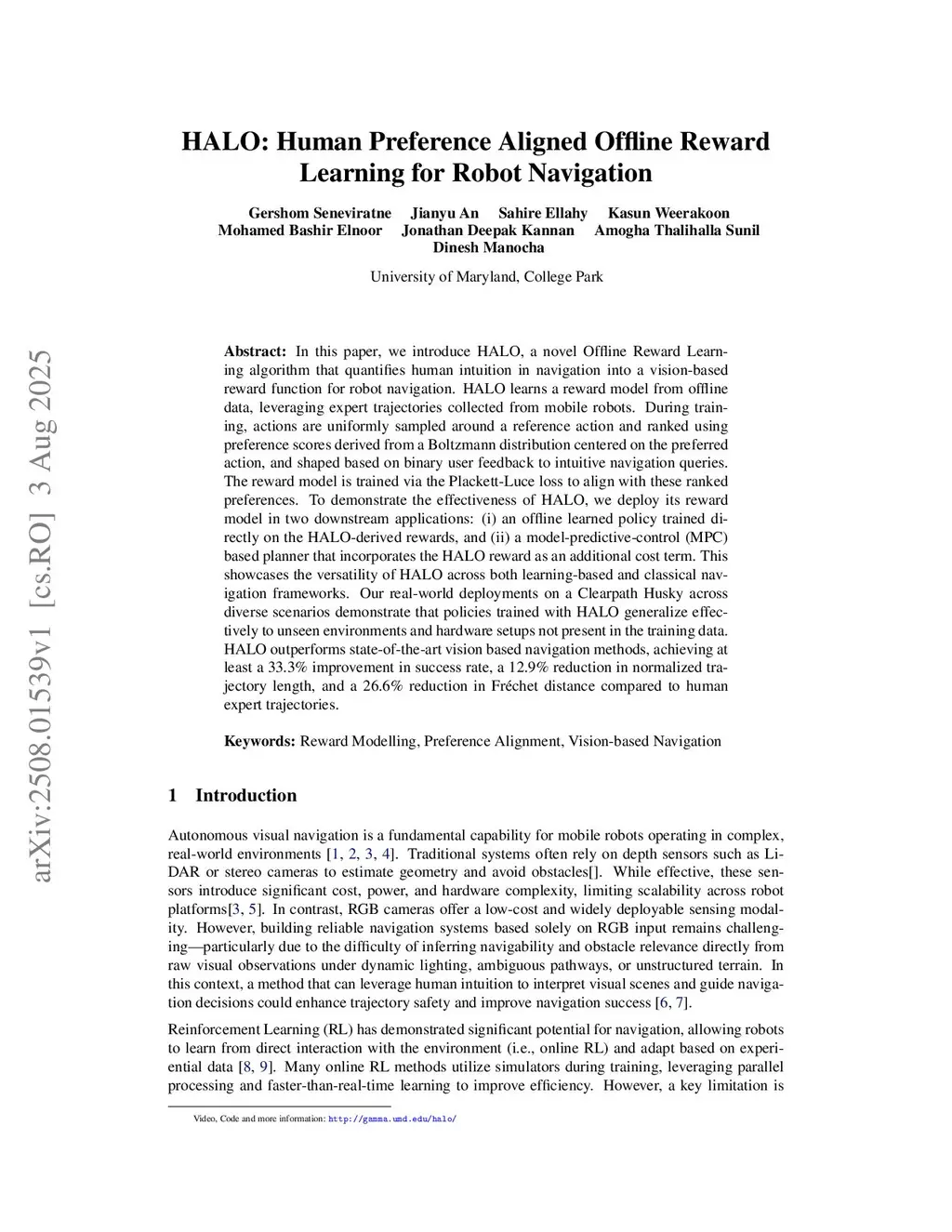 HALO: Human Preference Aligned Offline Reward Learning for Robot Navigation