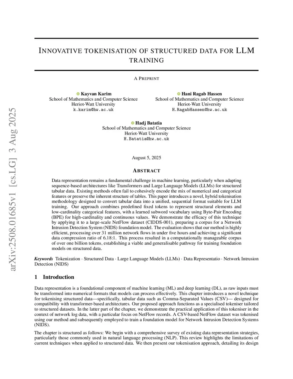 Innovative tokenisation of structured data for LLM training