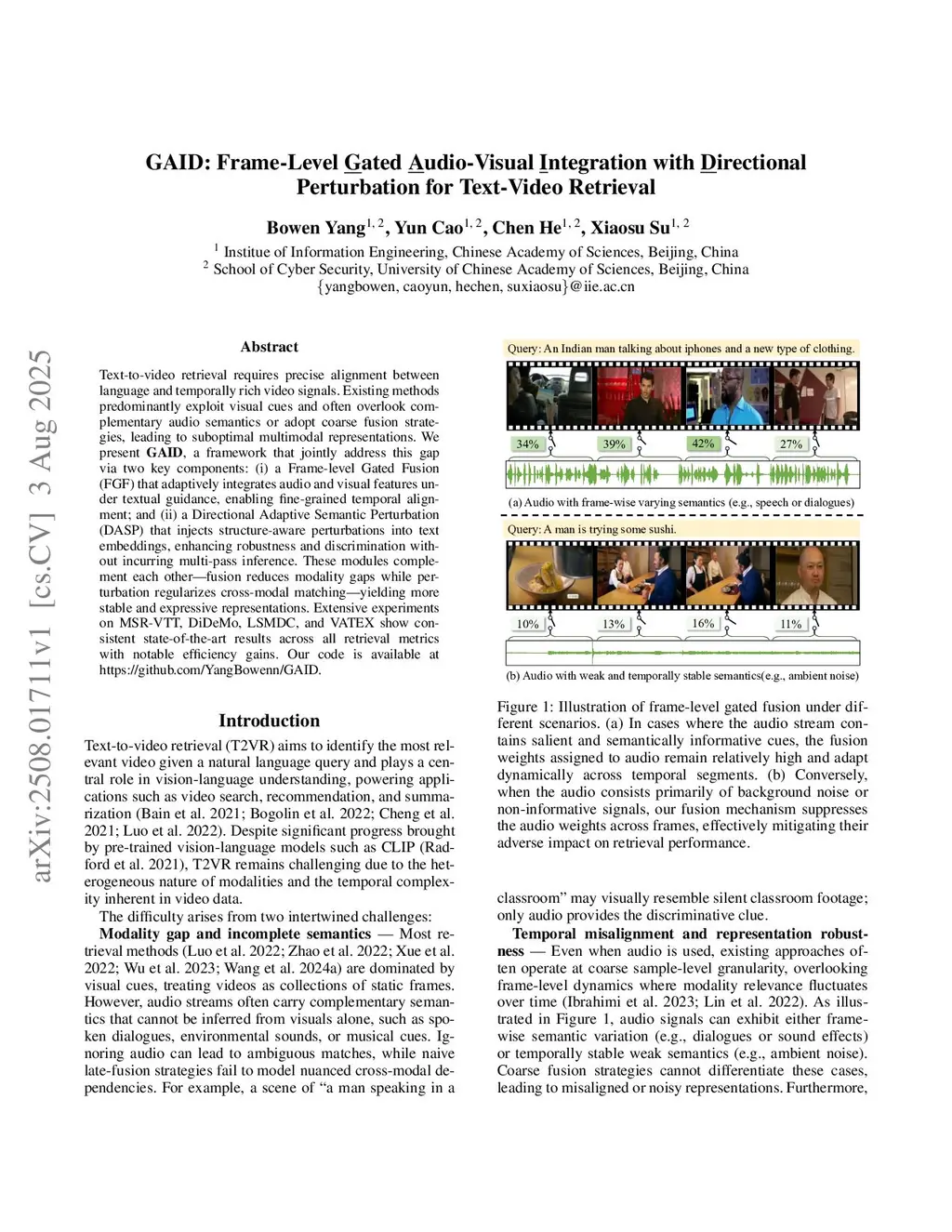 GAIS: Frame-Level Gated Audio-Visual Integration with Semantic Variance-Scaled Perturbation for Text-Video Retrieval