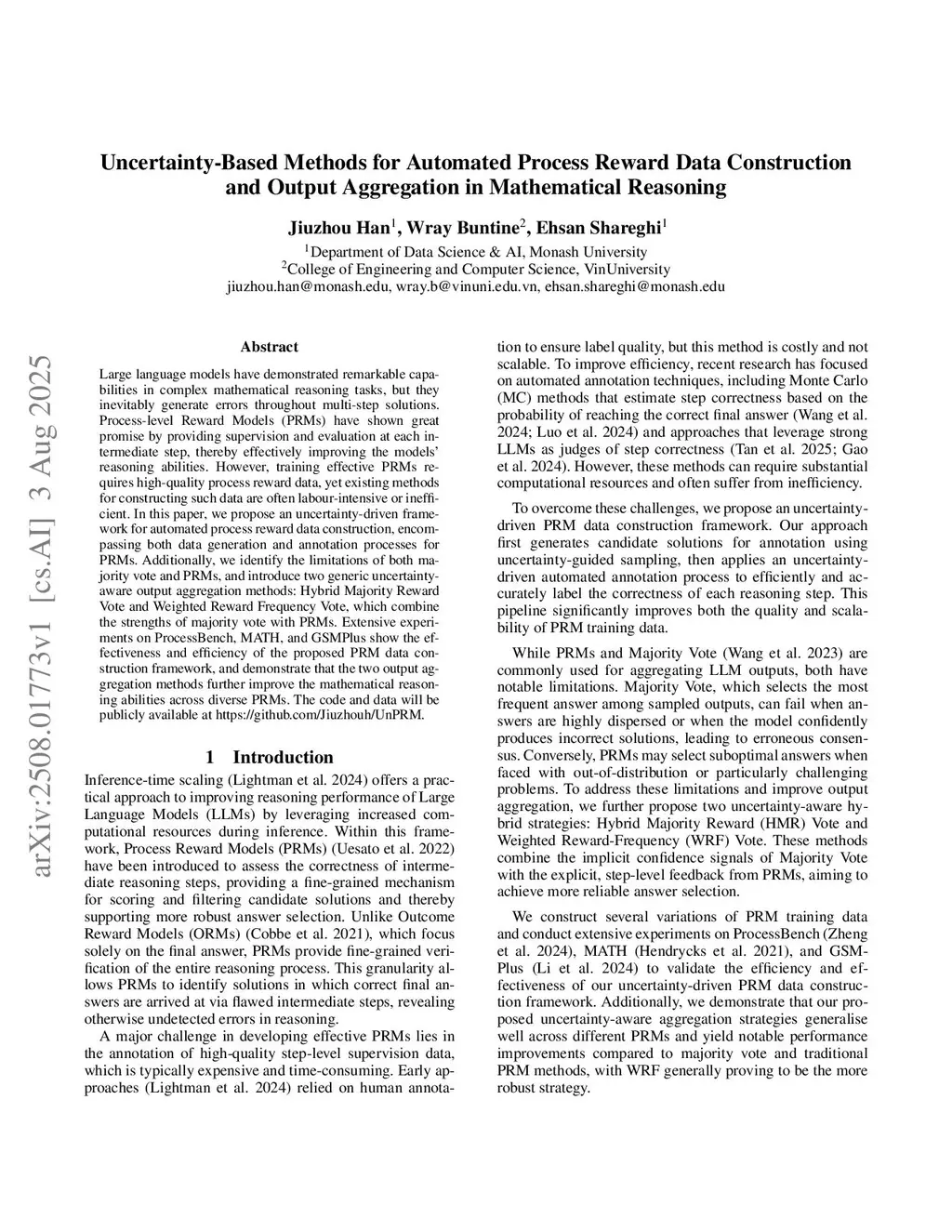 Uncertainty-Based Methods for Automated Process Reward Data Construction and Output Aggregation in Mathematical Reasoning