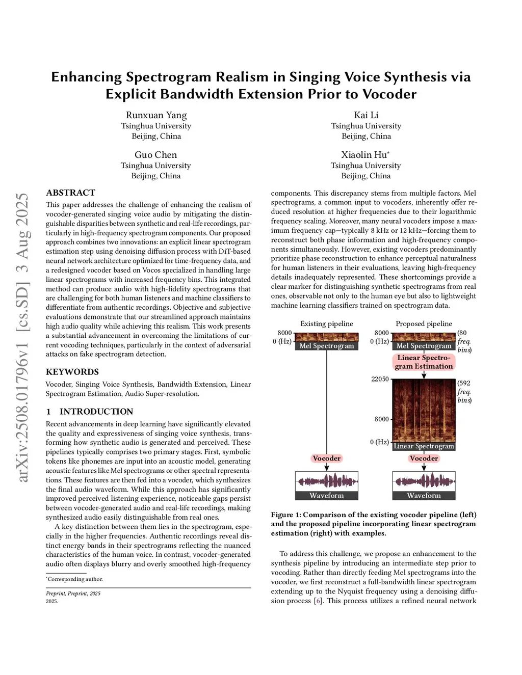 This paper addresses the challenge of enhancing the realism of vocoder-generated singing voice audio by mitigating the distinguishable disparities between synthetic and real-life recordings, particularly in high-frequency spectrogram components. Our proposed approach combines two innovations: an explicit linear spectrogram estimation step using denoising diffusion process with DiT-based neural network architecture optimized for time-frequency data, and a redesigned vocoder based on Vocos specialized in handling large linear spectrograms with increased frequency bins. This integrated method can produce audio with high-fidelity spectrograms that are challenging for both human listeners and machine classifiers to differentiate from authentic recordings. Objective and subjective evaluations demonstrate that our streamlined approach maintains high audio quality while achieving this realism. This work presents a substantial advancement in overcoming the limitations of current vocoding techniques, particularly in the context of adversarial attacks on fake spectrogram detection.