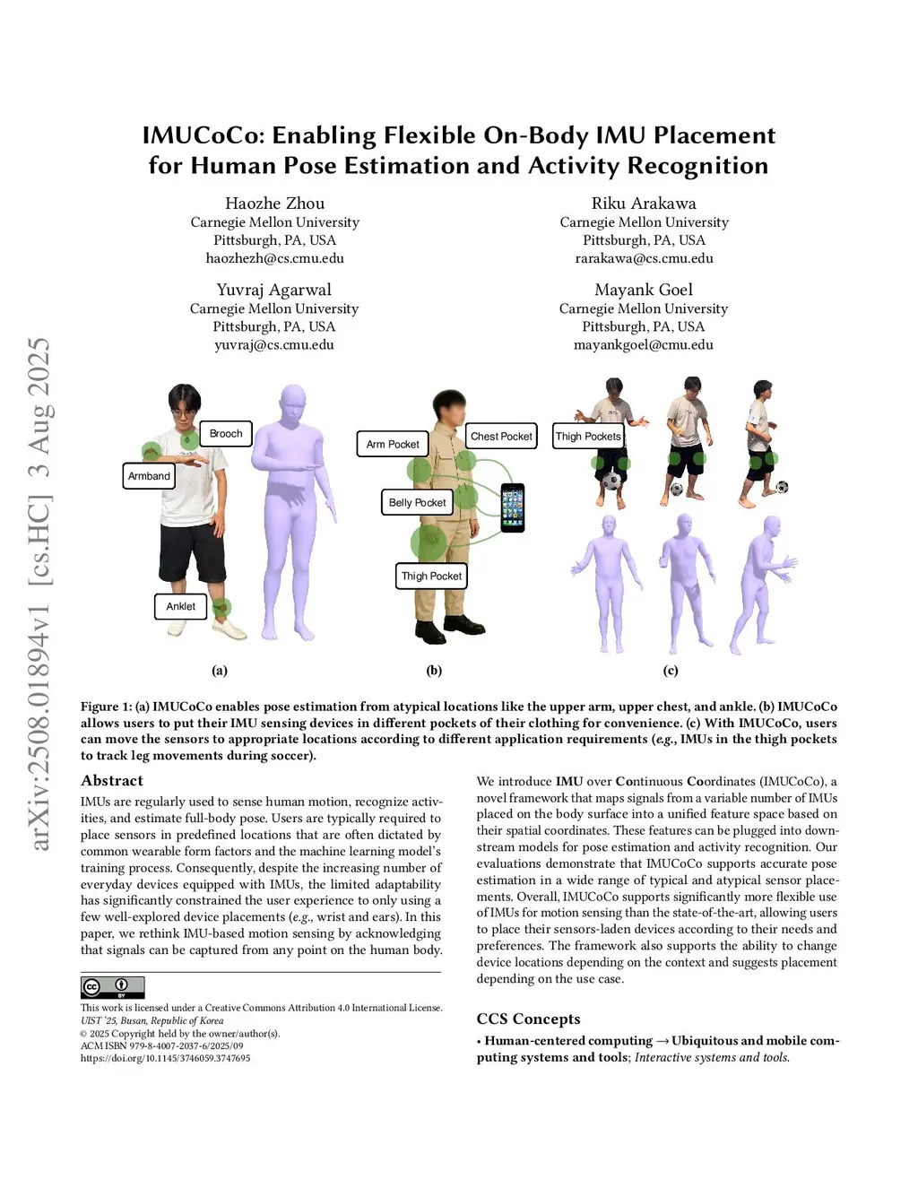 IMUCoCo: Enabling Flexible On-Body IMU Placement for Human Pose Estimation and Activity Recognition