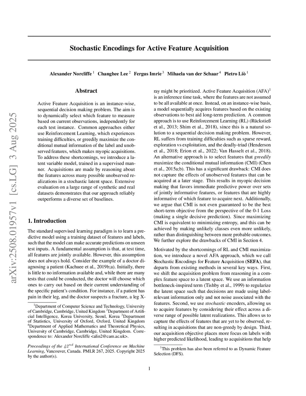 Stochastic Encodings for Active Feature Acquisition