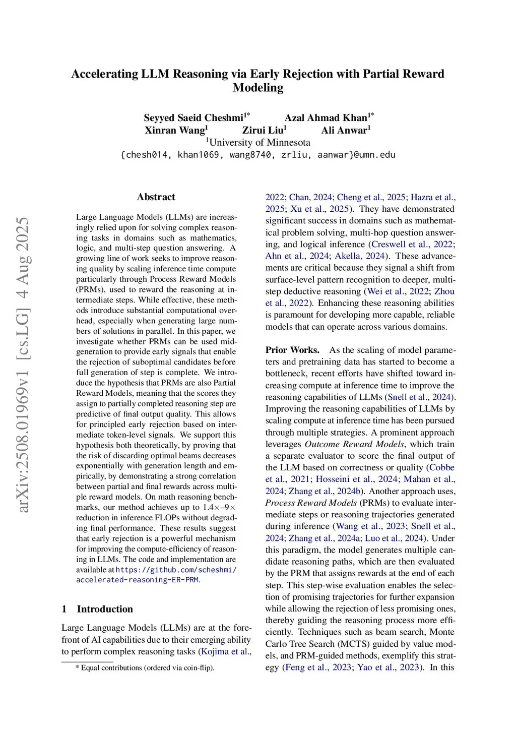 Large Language Models (LLMs) are increasingly relied upon for solving complex reasoning tasks in domains such as mathematics, logic, and multi-step question answering. A growing line of work seeks to improve reasoning quality by scaling inference time compute particularly through Process Reward Models (PRMs), used to reward the reasoning at intermediate steps. While effective, these methods introduce substantial computational overhead, especially when generating large numbers of solutions in parallel. In this paper, we investigate whether PRMs can be used mid-generation to provide early signals that enable the rejection of suboptimal candidates before full generation of step is complete. We introduce the hypothesis that PRMs are also Partial Reward Models, meaning that the scores they assign to partially completed reasoning step are predictive of final output quality. This allows for principled early rejection based on intermediate token-level signals. We support this hypothesis both theoretically, by proving that the risk of discarding optimal beams decreases exponentially with generation length and empirically, by demonstrating a strong correlation between partial and final rewards across multiple reward models. On math reasoning benchmarks, our method achieves up to 1.4-9 reduction in inference FLOPs without degrading final performance. These results suggest that early rejection is a powerful mechanism for improving the compute-efficiency of reasoning in LLMs.