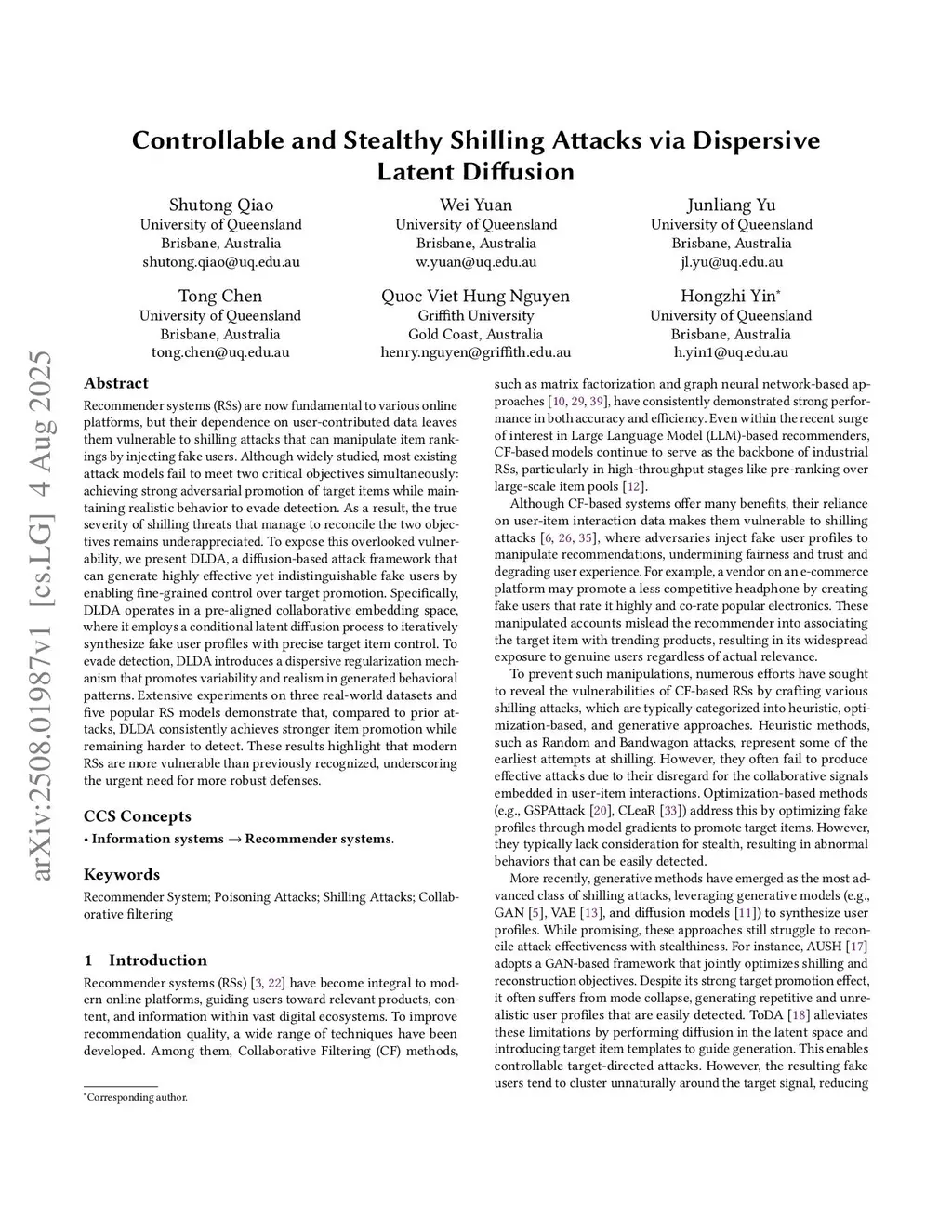 Controllable and Stealthy Shilling Attacks via Dispersive Latent Diffusion