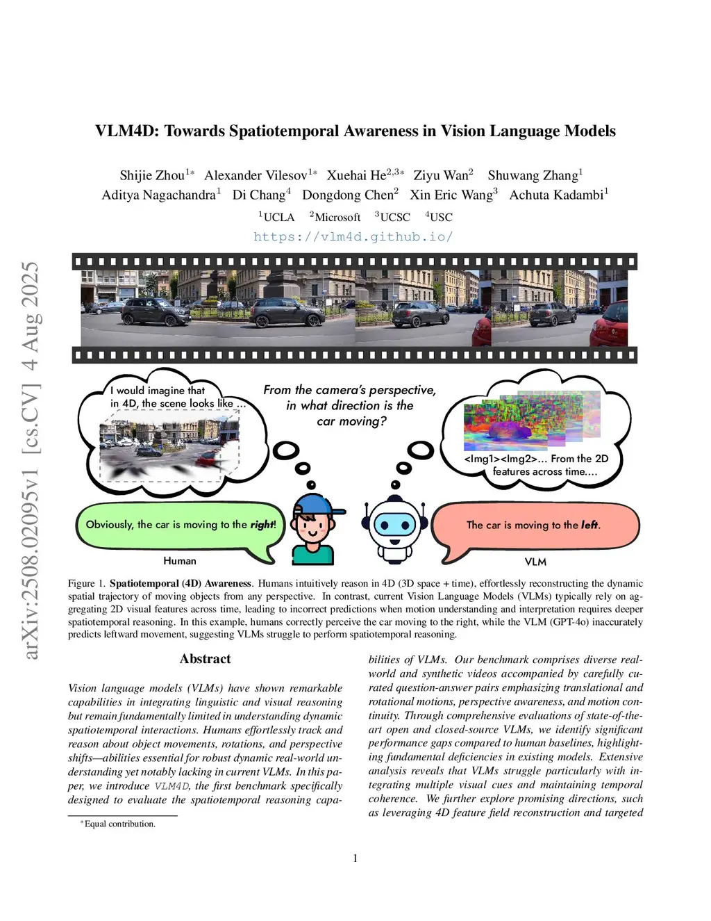 VLM4D: Towards Spatiotemporal Awareness in Vision Language Models