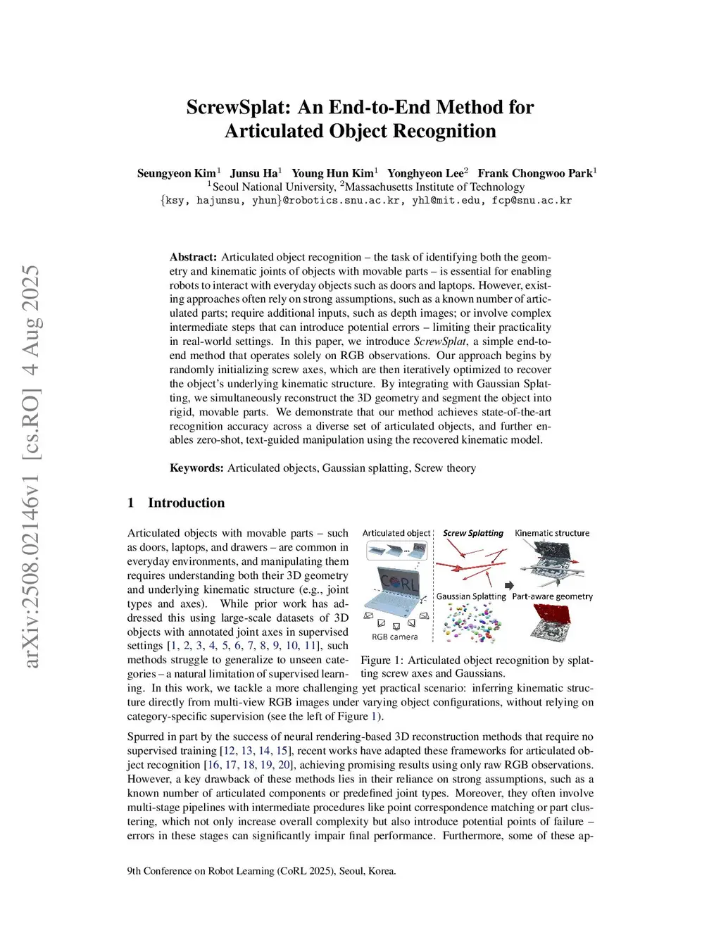 ScrewSplat: An End-to-End Method for Articulated Object Recognition