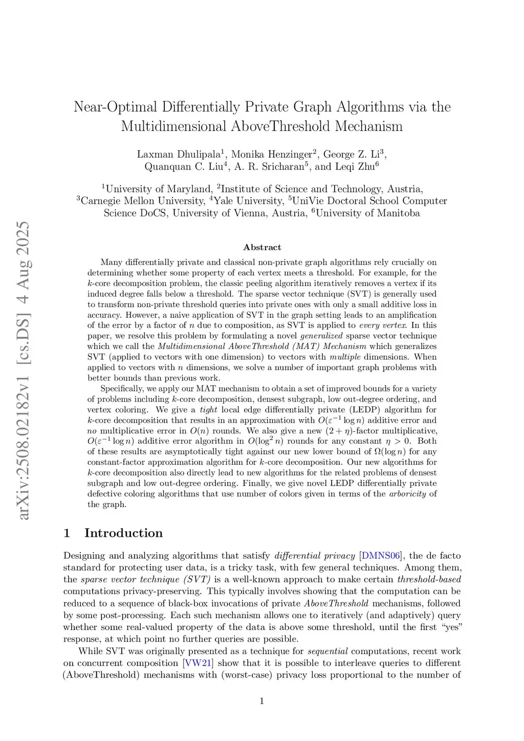 Many differentially private and classical non-private graph algorithms rely crucially on determining whether some property of each vertex meets a threshold. For example, for the -core decomposition problem, the classic peeling algorithm iteratively removes a vertex if its induced degree falls below a threshold. The sparse vector technique (SVT) is generally used to transform non-private threshold queries into private ones with only a small additive loss in accuracy. However, a naive application of SVT in the graph setting leads to an amplification of the error by a factor of due to composition, as SVT is applied to every vertex. In this paper, we resolve this problem by formulating a novel generalized sparse vector technique which we call the Multidimensional AboveThreshold (MAT) Mechanism which generalizes SVT (applied to vectors with one dimension) to vectors with multiple dimensions. As an application, we solve a number of important graph problems with better bounds than previous work.We apply our MAT mechanism to obtain a set of improved bounds for a variety of problems including -core decomposition, densest subgraph, low out-degree ordering, and vertex coloring. We give a tight local edge DP algorithm for -core decomposition with additive error and no multiplicative error in rounds. We also give a new -factor multiplicative, additive error algorithm in rounds for any constant . Both of these results are asymptotically tight against our new lower bound of for any constant-factor approximation algorithm for -core decomposition. Our new algorithms for -core also directly lead to new algorithms for densest subgraph and low out-degree ordering. Our novel private defective coloring algorithms uses number of colors proportional to the arboricity of the graph.