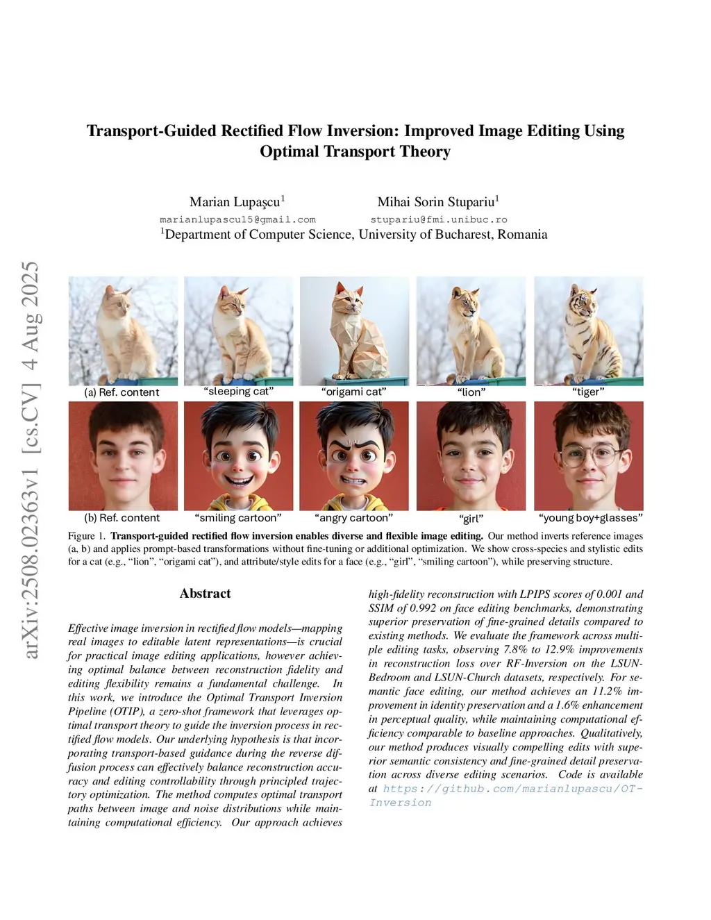 Image editing in rectified flow models remains challenging due to the fundamental trade-off between reconstruction fidelity and editing flexibility. While inversion-based methods suffer from trajectory deviation, recent inversion-free approaches like FlowEdit offer direct editing pathways but can benefit from additional guidance to improve structure preservation. In this work, we demonstrate that optimal transport theory provides a unified framework for improving both paradigms in rectified flow editing. We introduce a zero-shot transport-guided inversion framework that leverages optimal transport during the reverse diffusion process, and extend optimal transport principles to enhance inversion-free methods through transport-optimized velocity field corrections. Incorporating transport-based guidance can effectively balance reconstruction accuracy and editing controllability across different rectified flow editing approaches. For inversion-based editing, our method achieves high-fidelity reconstruction with LPIPS scores of 0.001 and SSIM of 0.992 on face editing benchmarks, observing 7.8% to 12.9% improvements over RF-Inversion on LSUN datasets. For inversion-free editing with FlowEdit on FLUX and Stable Diffusion 3, we demonstrate consistent improvements in semantic consistency and structure preservation across diverse editing scenarios. Our semantic face editing experiments show an 11.2% improvement in identity preservation and enhanced perceptual quality. The unified optimal transport framework produces visually compelling edits with superior detail preservation across both inversion-based and direct editing paradigms. Code is available for RF-Inversion and FlowEdit at:this https URL