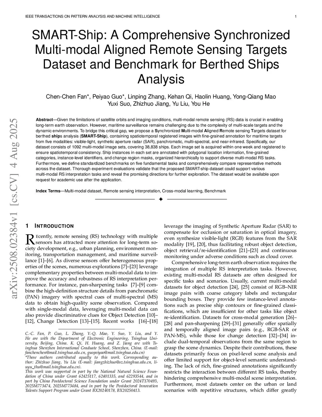 Given the limitations of satellite orbits and imaging conditions, multi-modal remote sensing (RS) data is crucial in enabling long-term earth observation. However, maritime surveillance remains challenging due to the complexity of multi-scale targets and the dynamic environments. To bridge this critical gap, we propose a Synchronized Multi-modal Aligned Remote sensing Targets dataset for berthed ships analysis (SMART-Ship), containing spatiotemporal registered images with fine-grained annotation for maritime targets from five modalities: visible-light, synthetic aperture radar (SAR), panchromatic, multi-spectral, and near-infrared. Specifically, our dataset consists of 1092 multi-modal image sets, covering 38,838 ships. Each image set is acquired within one week and registered to ensure spatiotemporal consistency. Ship instances in each set are annotated with polygonal location information, fine-grained categories, instance-level identifiers, and change region masks, organized hierarchically to support diverse multi-modal RS tasks. Furthermore, we define standardized benchmarks on five fundamental tasks and comprehensively compare representative methods across the dataset. Thorough experiment evaluations validate that the proposed SMART-Ship dataset could support various multi-modal RS interpretation tasks and reveal the promising directions for further exploration.