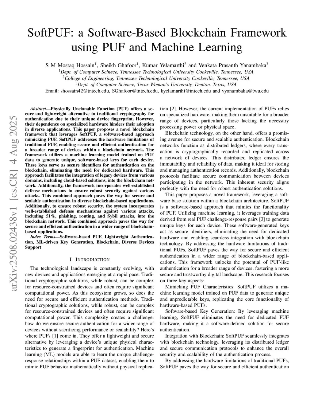 SoftPUF: a Software-Based Blockchain Framework using PUF and Machine Learning