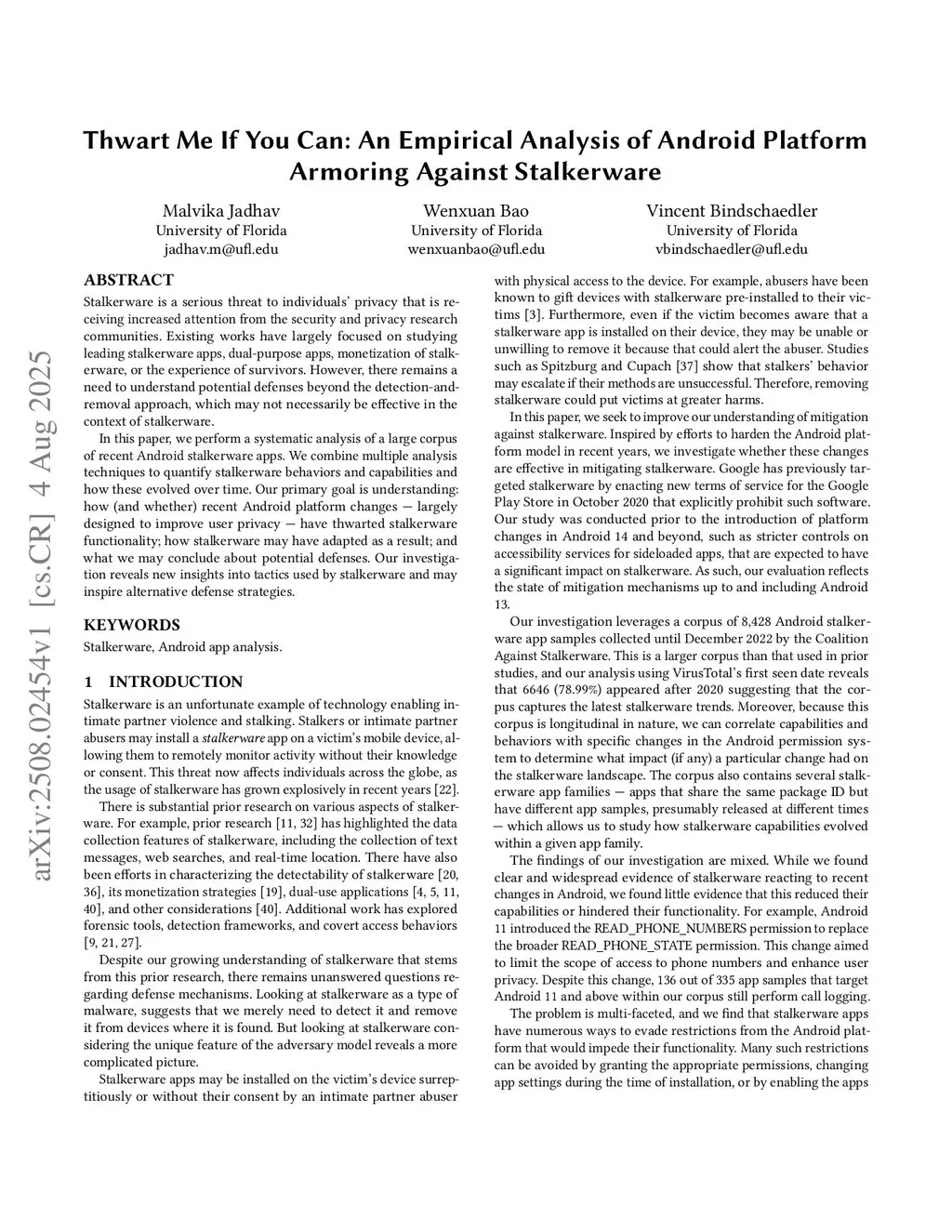 Thwart Me If You Can: An Empirical Analysis of Android Platform Armoring Against Stalkerware