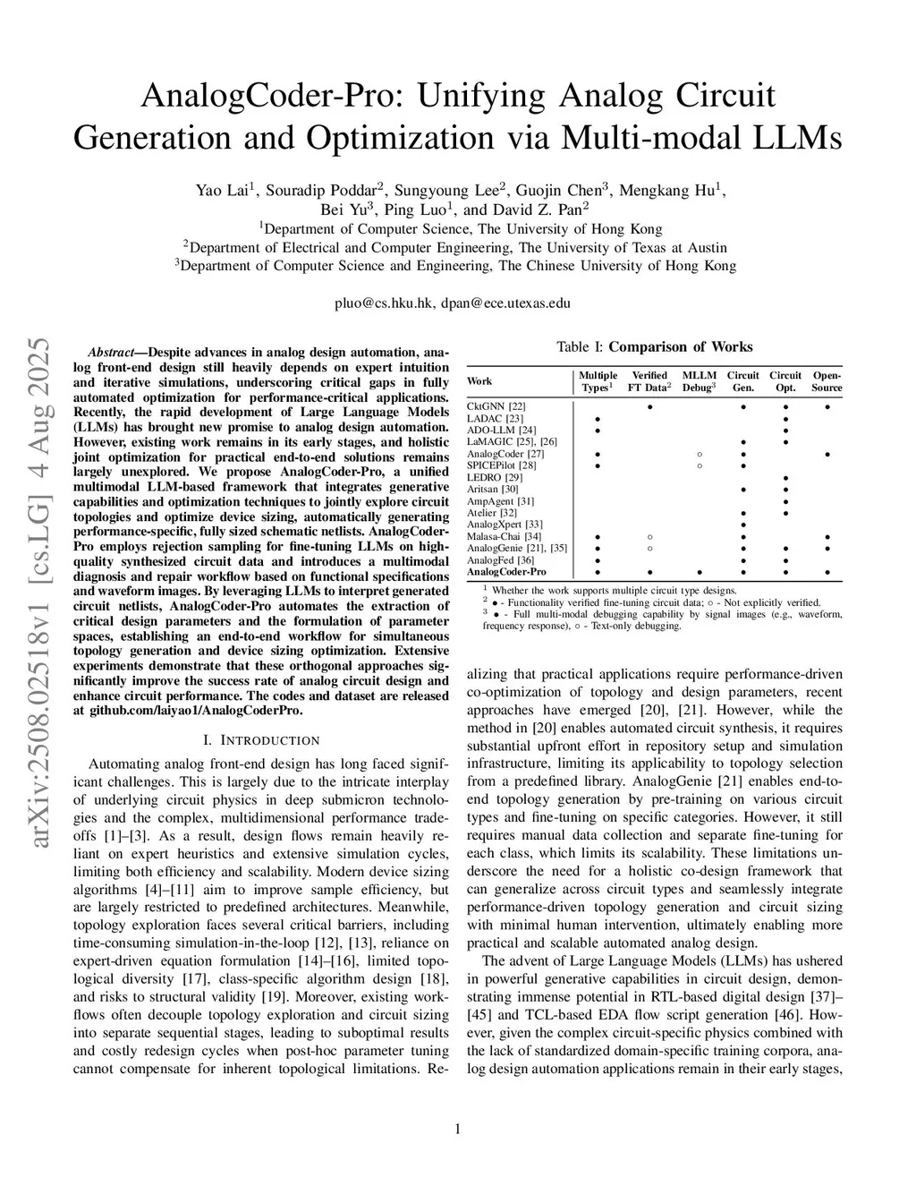 Despite advances in analog design automation, analog front-end design still heavily depends on expert intuition and iterative simulations, underscoring critical gaps in fully automated optimization for performance-critical applications. Recently, the rapid development of Large Language Models (LLMs) has brought new promise to analog design automation. However, existing work remains in its early stages, and holistic joint optimization for practical end-to-end solutions remains largely unexplored. We propose AnalogCoder-Pro, a unified multimodal LLM-based framework that integrates generative capabilities and optimization techniques to jointly explore circuit topologies and optimize device sizing, automatically generating performance-specific, fully sized schematic netlists. AnalogCoder-Pro employs rejection sampling for fine-tuning LLMs on high-quality synthesized circuit data and introduces a multimodal diagnosis and repair workflow based on functional specifications and waveform images. By leveraging LLMs to interpret generated circuit netlists, AnalogCoder-Pro automates the extraction of critical design parameters and the formulation of parameter spaces, establishing an end-to-end workflow for simultaneous topology generation and device sizing optimization. Extensive experiments demonstrate that these orthogonal approaches significantly improve the success rate of analog circuit design and enhance circuit performance.