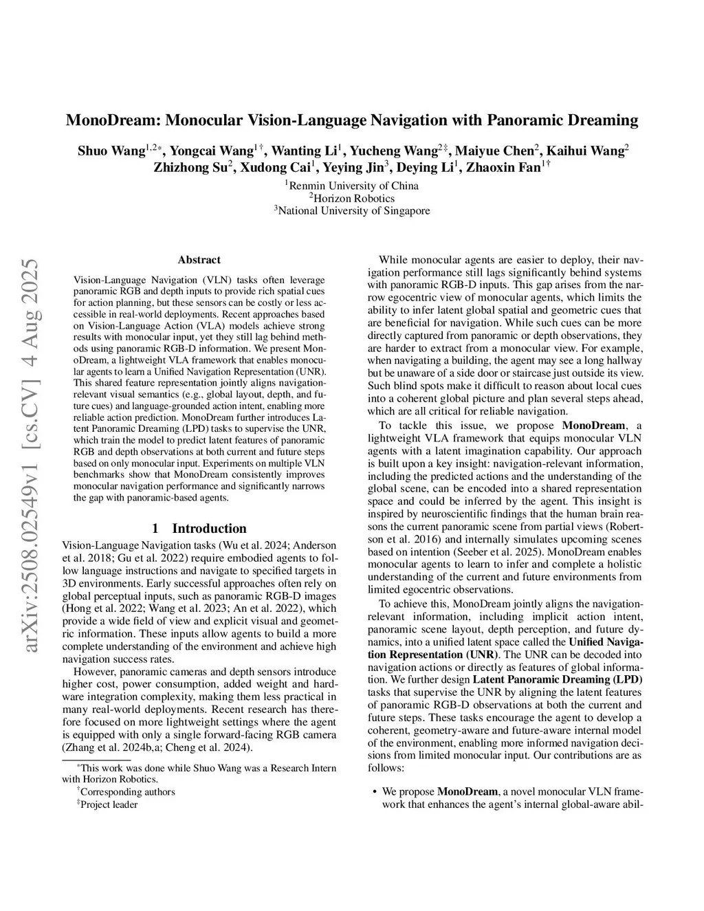 MonoDream: Monocular Vision-Language Navigation with Panoramic Dreaming