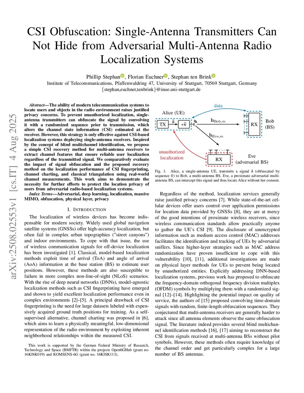 The ability of modern telecommunication systems to locate users and objects in the radio environment raises justified privacy concerns. To prevent unauthorized localization, single-antenna transmitters can obfuscate the signal by convolving it with a randomized sequence prior to transmission, which alters the channel state information (CSI) estimated at the receiver. However, this strategy is only effective against CSI-based localization systems deploying single-antenna receivers. Inspired by the concept of blind multichannel identification, we propose a simple CSI recovery method for multi-antenna receivers to extract channel features that ensure reliable user localization regardless of the transmitted signal. We comparatively evaluate the impact of signal obfuscation and the proposed recovery method on the localization performance of CSI fingerprinting, channel charting, and classical triangulation using real-world channel measurements. This work aims to demonstrate the necessity for further efforts to protect the location privacy of users from adversarial radio-based localization systems.